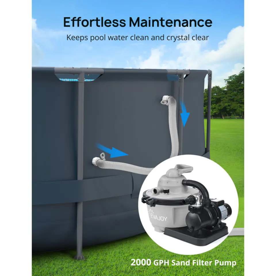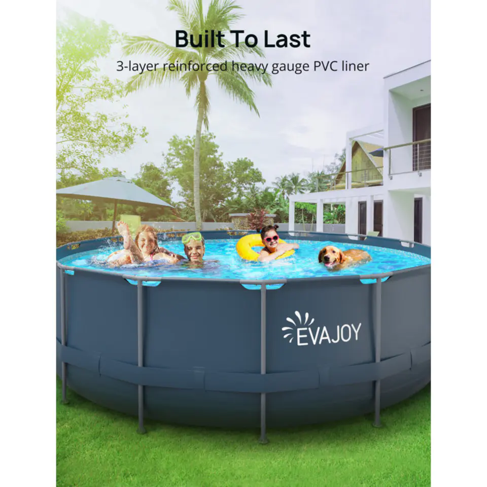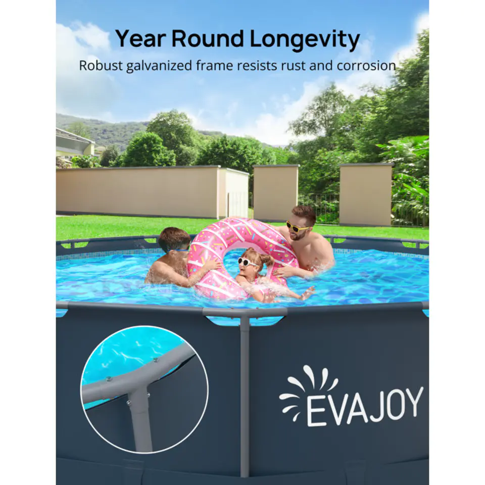 - Rust & Corrosion Resistant: The rugged galvanized frame of the EVAJOY above-ground pool is powder-coated on both sides, protecting it from rust and corrosion and lends a remarkable strength and durability to the pool set.
