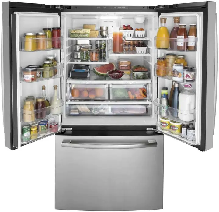 GE GNE27JYMFS 36" French Door Refrigerator with 27 cu. ft. Total Capacity Energy Star LED Lighting Internal Water Dispenser Spill-Proof Shelves in Fingerprint Resistant Stainless Steel