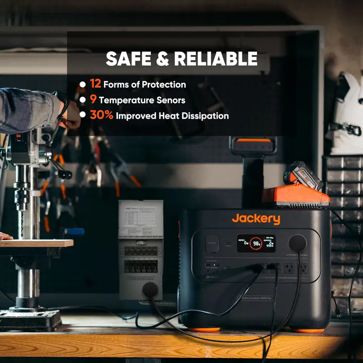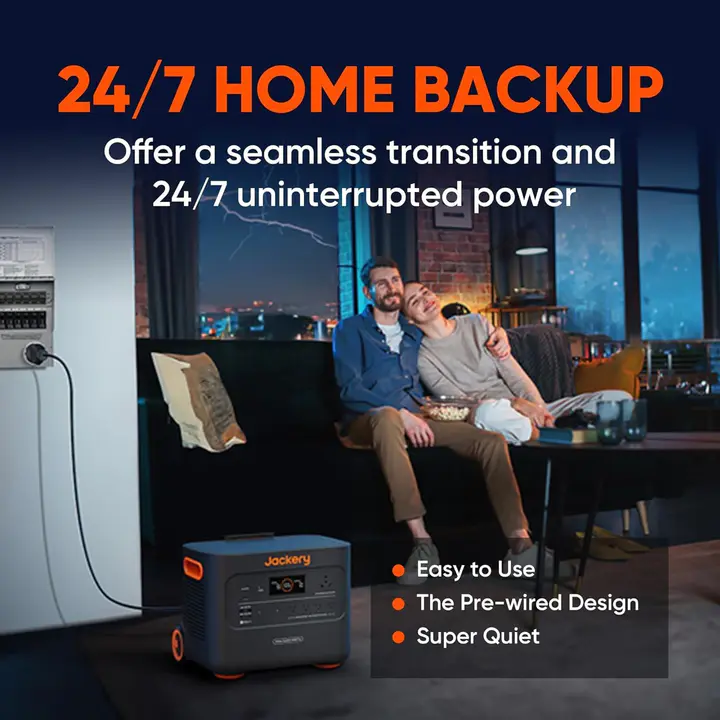 - 24/7 Home Backup. Safeguard your home through outages and storms with the Jackery Explorer 3000 Pro Portable Power Station and a manual Transfer Switch. This reliable Home Backup Solution brings power back within 0.5s when the grid goes down, offering a seamless transition and 24/7 uninterrupted power to keep all your essential devices running smoothly!